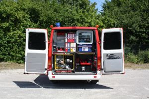 Stromerzeuger, Absperrmaterial, Megaphon, Handfeuerlöscher, Fernglas, Windmesser, Rundumkennleuchte Rot,